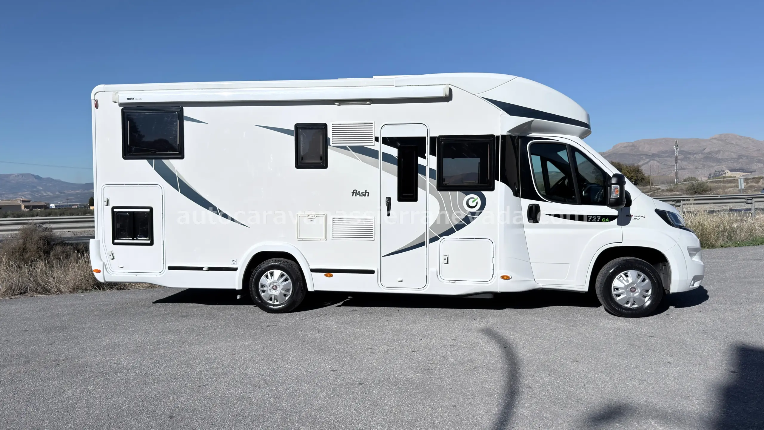 MOTOR: FIAT DUCATO 2.3 MULTIJET 130CV AÑO: 2017 KM: 91.000 Medidas exteriores: 7.30m x 2.90m Plazas: 5 Extras y Equipamiento: * Medida maletero con 3 accesos: (2.15m x 1.50m x 1.15m) * Camas (Gemelas ampliables /Salón Convertible/Colgante eléctrica en salon) – Aire acondicionado de motor – AirBag(conductor y copiloto) – Velocidad de Crucero – Cierre centralizado en cabina – Espejos eléctricos – Elevalunas eléctricos – Radio (CD-USB-BT-AUX) – Camara de Visión trasera – Asientos giratorios – Oscurecedores REMIS en cabina – Mosquiteras en ventanas. claraboyas y puerta principal – Claraboyas transparentes y Claraboya XXL panoramica en cabina – Frigo THETFORD (220v. Gas. 12v. Auto) 175L capacidad – Ducha con mampara separada de aseo – Baterías de 100ah. – Placa solar de 100w. – Calefacción Truma Inet Ready a gasoil – TV 12v(TDT-HDMI-USB-DVD) – Escalón doble peldaño integrado – Toldo THULE de 4m. – Neumáticos reforzados especial camper
