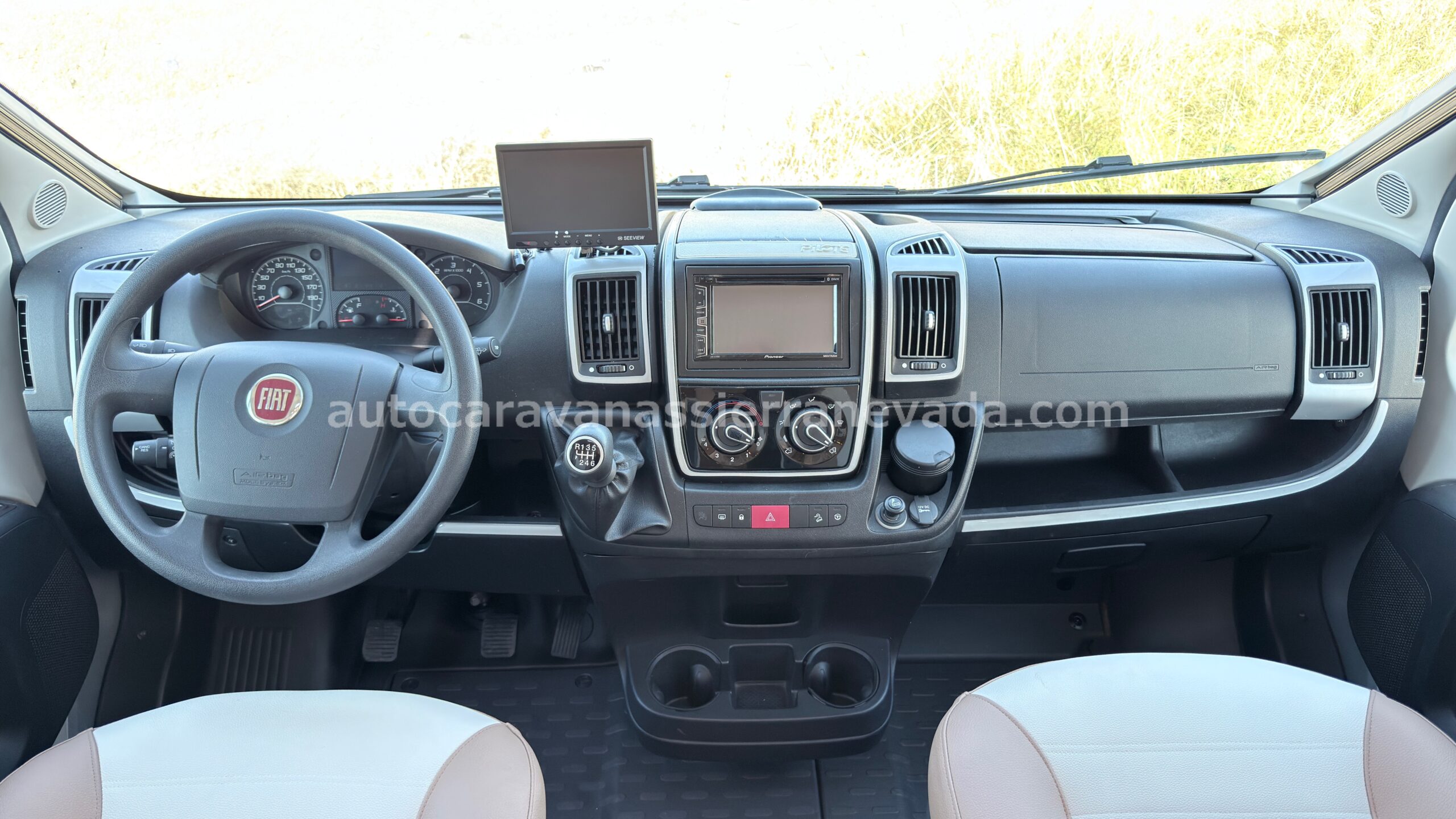 MOTOR: FIAT DUCATO 2.3 MULTIJET 150cv AÑO: 2015 KM: 131.000 Medidas exteriores: 7,40m x 2,80m Plazas: 4 Extras y Equipamiento: * Medidas maletero con doble acceso : (2,20m x 1,00m x 1,20m) * Camas (Isla eléctrica elevable/Salón Convertible) * Suspensión Neumática – Aire acondicionado (de motor) – AirBag conductor y copiloto – Velocidad de Crucero – Cierre Centralizado – Espejos eléctricos – Elevalunas eléctricos – Equipo Multimedia – Asientos Giratorios – Cámara de Visión Trasera – Oscurecedores REMIS en cabina completa – Mosquiteras en ventanas ,claraboyas y puerta principal – Claraboya transparentes y Claraboya panorámica xxl en cabina – Extractor de Humos – Frigo THETFORD (220v, Gas, 12v) 149L – Ducha con mampara dentro de aseo – Inversor de 2000w. – Batería LITIO de 100ah. – Placa solar 100w – Calefacción ALDE – TV. – Escalón deléctrico de aluminio – Patas estabilizadoras hídraulicas – Toldo THULE de 4,5m. – 1 Cierre de Seguridad – Neumáticos reforzados especial camper