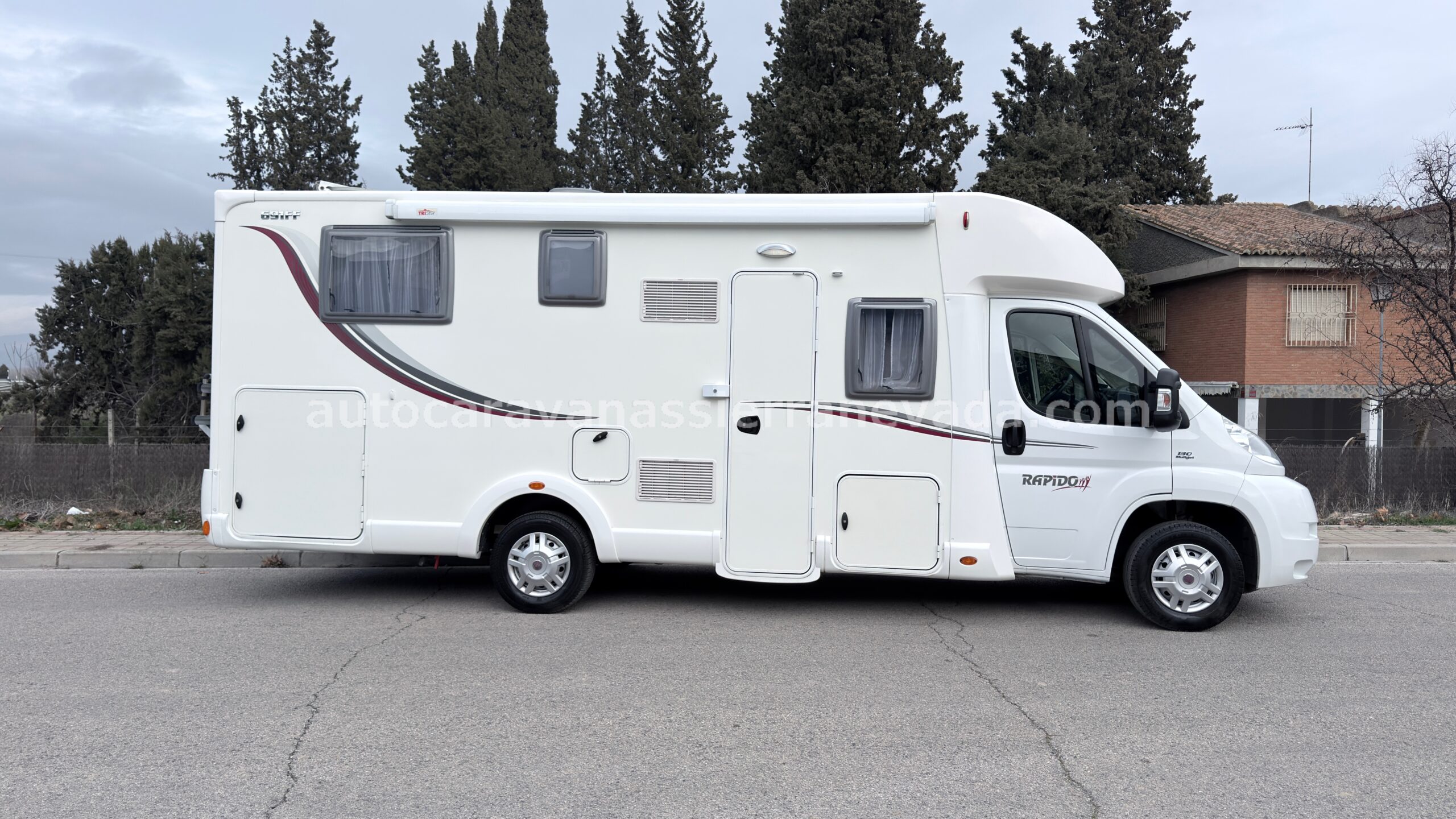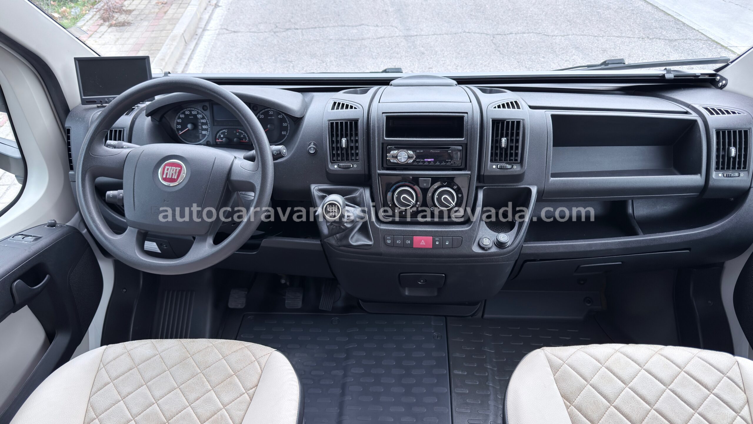 MOTOR: FIAT DUCATO 2.3 MULTIJET 130cv AÑO: 2013 KM: 78.000 Medidas exteriores: 7,30m x 2,90m Plazas: 4 Extras y Equipamiento: * Medidas maletero con doble acceso : (2,20m x 1,10m x 1,10m) * Camas (Isla /Colgante en salón) – Aire acondicionado (de motor) – AirBag conductor y copiloto – Velocidad de Crucero – Cierre Centralizado – Espejos eléctricos – Elevalunas eléctricos – Equipo Multimedia – Asientos Giratorios – Cámara de Visión Trasera – Mosquiteras en ventanas ,claraboyas y puerta principal – Claraboya transparentes y Claraboya panorámica xxl en cabina – Extractor de Humos – Frigo THETFORD (220v, Gas, 12v,aut) 149L – Horno a gas – Ducha con mampara separado de aseo – Batería de 100ah. – 2 Placa solar 100w – Calefacción Truma Combi – TV. – Escalón doble peldaño integrado – Toldo TRISTOR de 3,5m. – Portabicis para 2 – 1 Cierre de Seguridad – Neumáticos reforzados especial camper