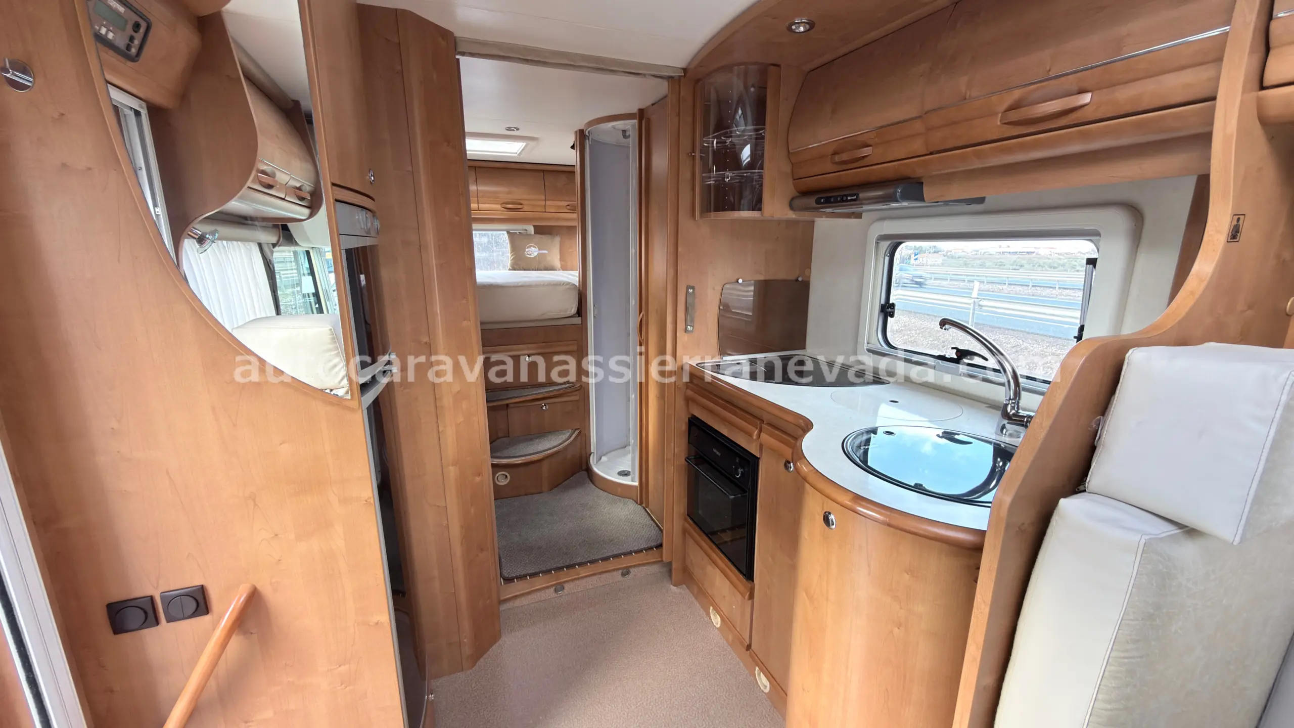 MOTOR: MERCEDES 3.0 CDI 183CV AÑO: 2008 KM: 167.000 Medidas exteriores: 7,30m x 2,90m Plazas: 4 Extras y Equipamiento: * Medidas maletero con doble acceso : (2,20m x 1,30m x 1,20m) * Camas (Transversal/Colgante en cabina) * CADENA DE DISTRIBUCIÓN – Aire acondicionado (de motor) – AirBag conductor – A.S.R – S.R.S – Velocidad de Crucero – Cierre Centralizado(en cabina) – Elevalunas eléctricos(en conductor) – Equipo Multimedia – Asientos Giratorios – Camara de Visión trasera – Oscurecedores REMIS en cabina completa – Mosquiteras en ventanas ,claraboyas y puerta principal – Ventana PRACTICABLE con mosquitera en puerta principal – Claraboya transparentes y Claraboya xxl en salón – Frigo DOMETIC (220v, Gas, 12v,aut) 175L – Extractor de Humos – Horno a gas – Ducha con mampara separado de aseo – Batería de 100ah. – 2 Placa solar 100w – Calefacción Truma Combi – TV. – Escalón doble peldaño integrado – Toldo FIAMMA de 4,5m. – Baca de aluminio – Patas estabilizadoras – Ducha exterior – Maleteros laterales extraible – Neumáticos reforzados especial camper