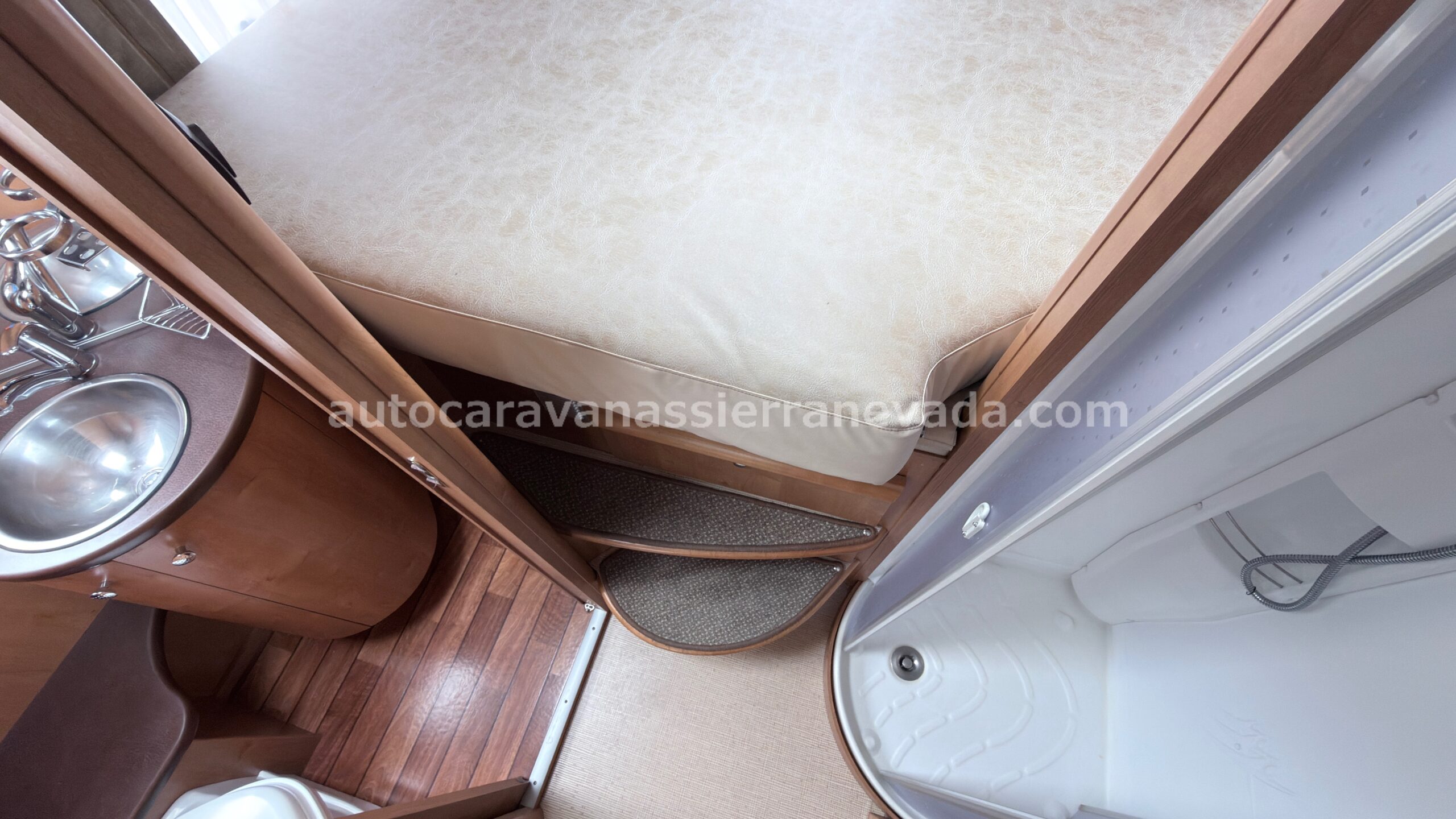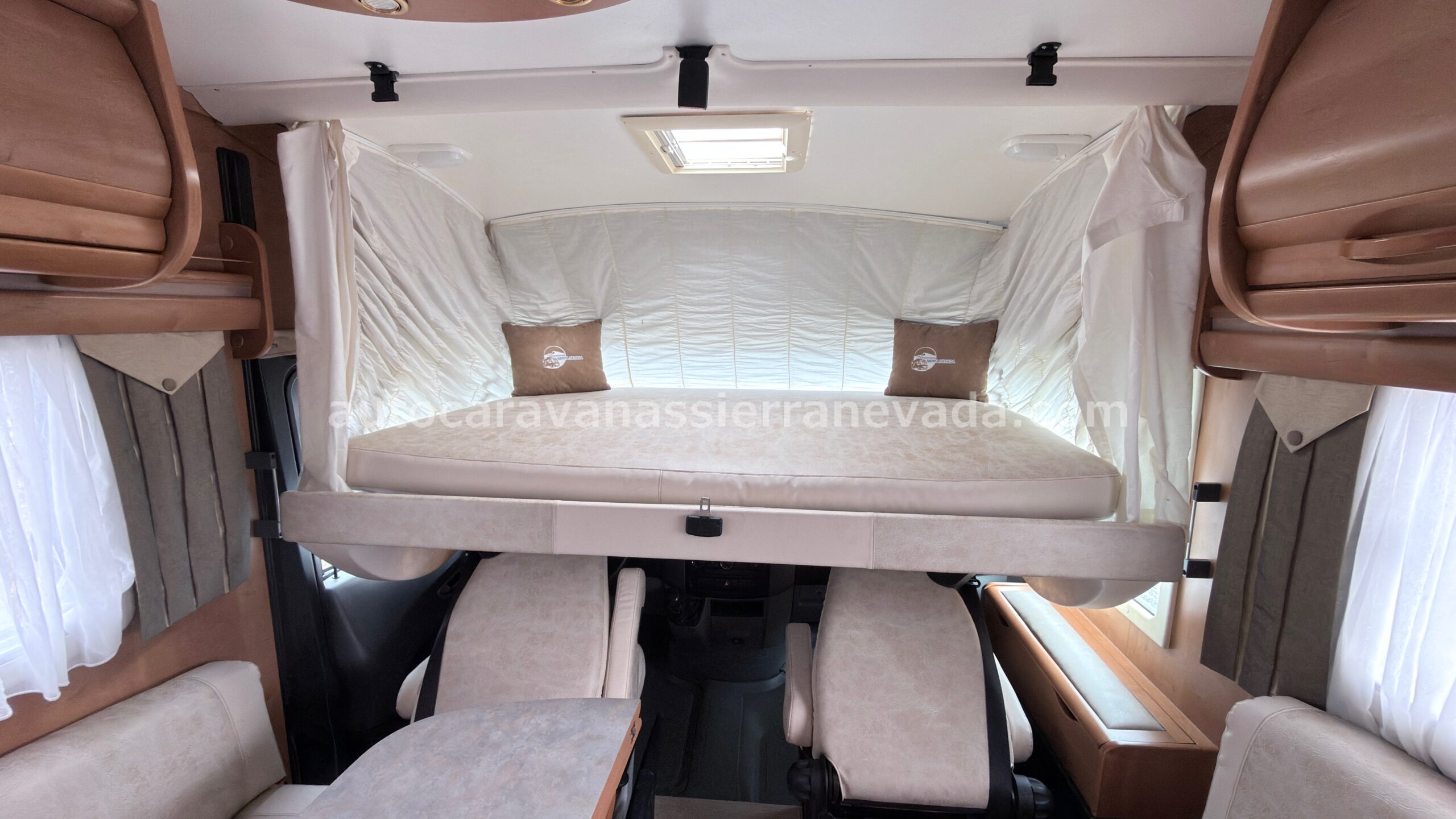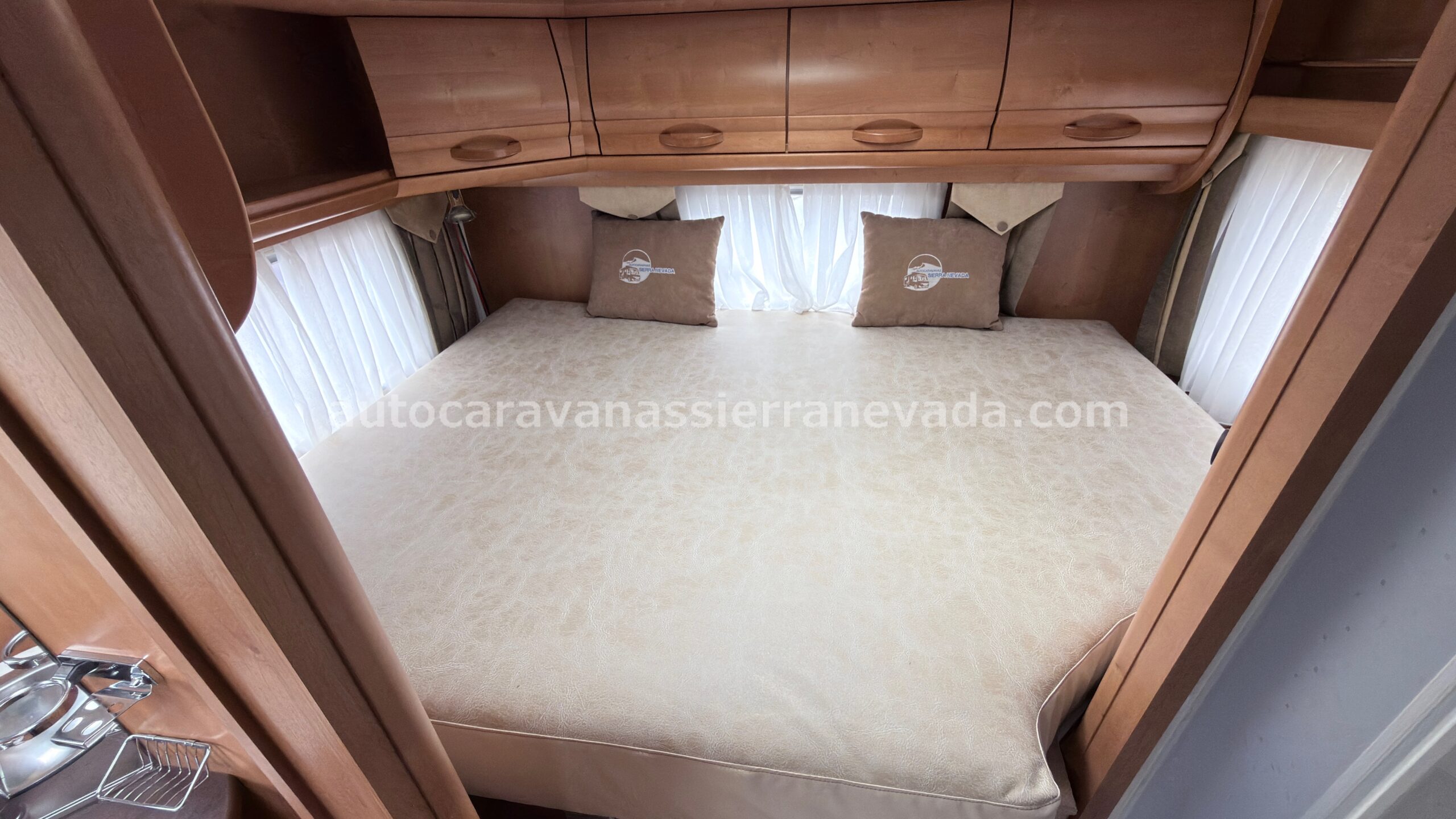 MOTOR: MERCEDES 2.2 CDI 160CV AÑO: 2007 KM: 91.000 Medidas exteriores: 7,30m x 2,90m Plazas: 4 Extras y Equipamiento: * Medidas maletero con doble acceso : (2,20m x 1,20m x 1,20m) * Camas (Transversal/Colgante en cabina) * CADENA DE DISTRIBUCIÓN – Aire acondicionado (de motor) – ASR – Cierre Centralizado – Elevalunas eléctricos(conductor) – Equipo Multimedia – Asientos Giratorios – Oscurecedores REMIS en cabina completa – Mosquiteras en ventanas y claraboyas – Ventna PRACTICABLE con mosquitera en puerta principal – Claraboya transparentes y Claraboya XXL en salón – Climatizador a 12v. – Frigo DOMETIC (220v, Gas, 12v,aut) 150L – Horno a gas – Extractor de Humos – Ducha con mampara separado de aseo – Batería de 100ah. – 2 Placa solar 100w – Calefacción Truma Trumatic C – TV. – Escalón doble peldaño integrado – Toldo FIAMMA de 4m. – Baca de aluminio – Patas estabilizadoras – Portabicis para 4 – Ducha exterior – Maleteros laterales extraibles – Cierre de Seguridad 1 – Neumáticos reforzados especial camper