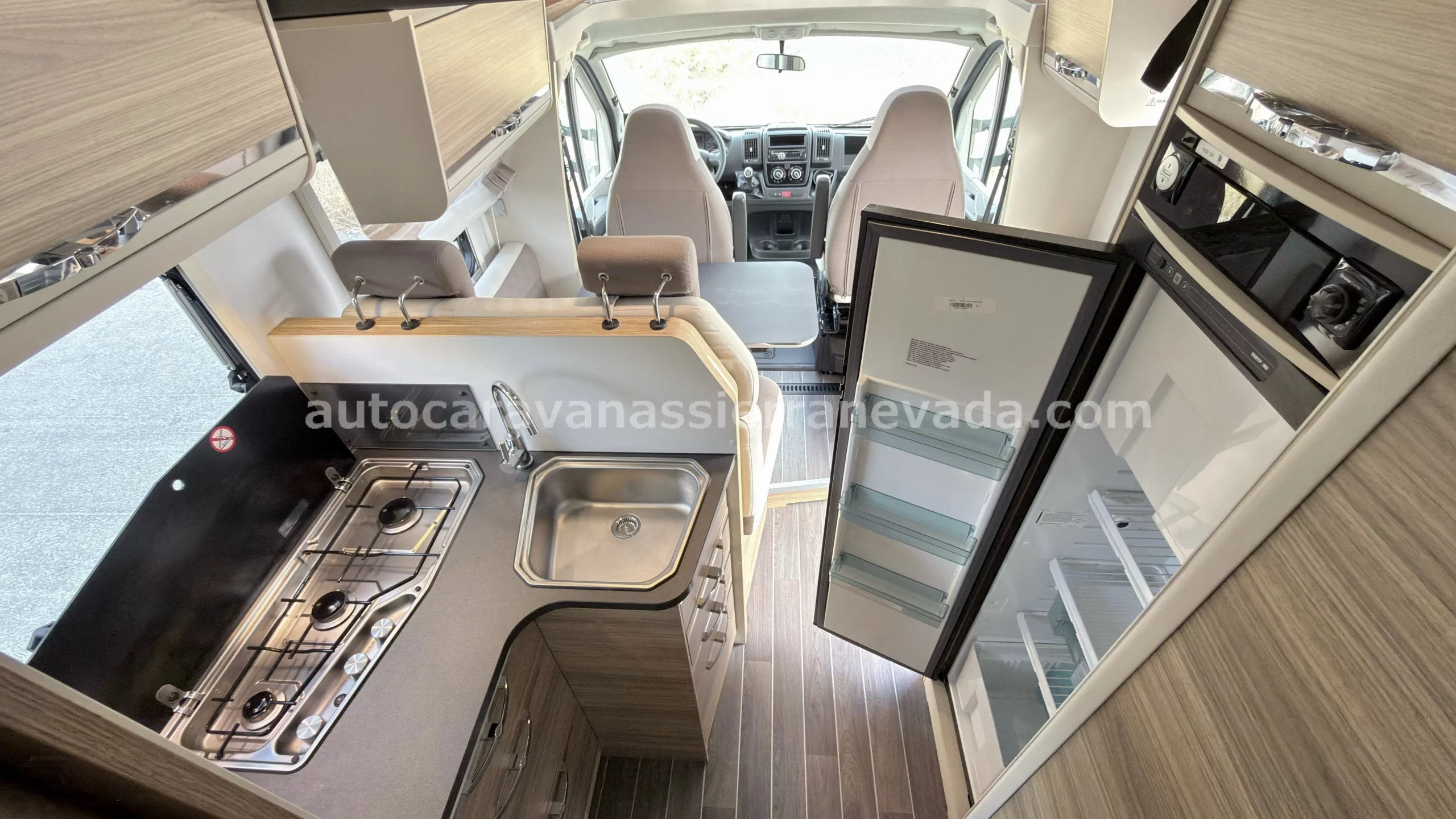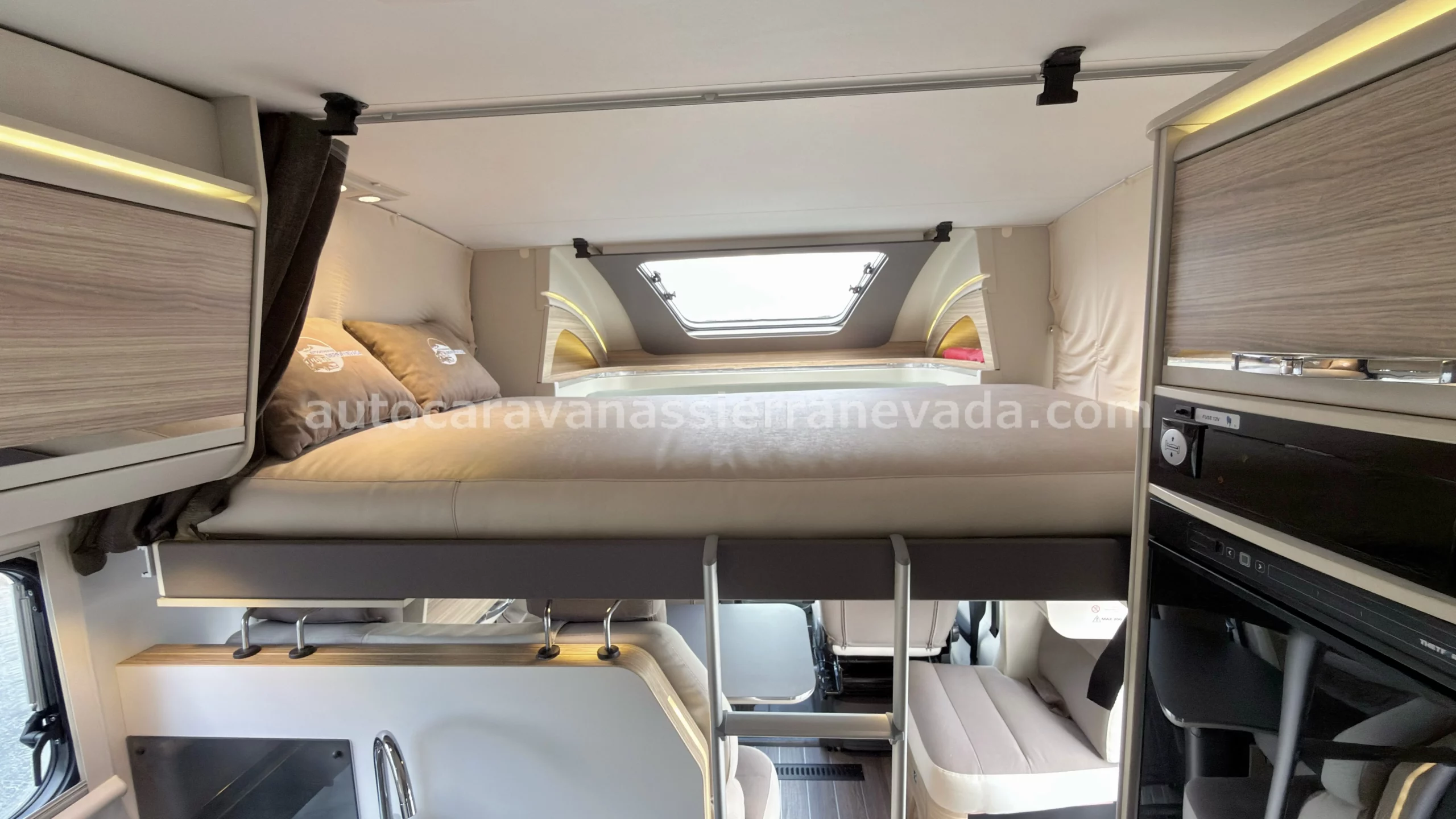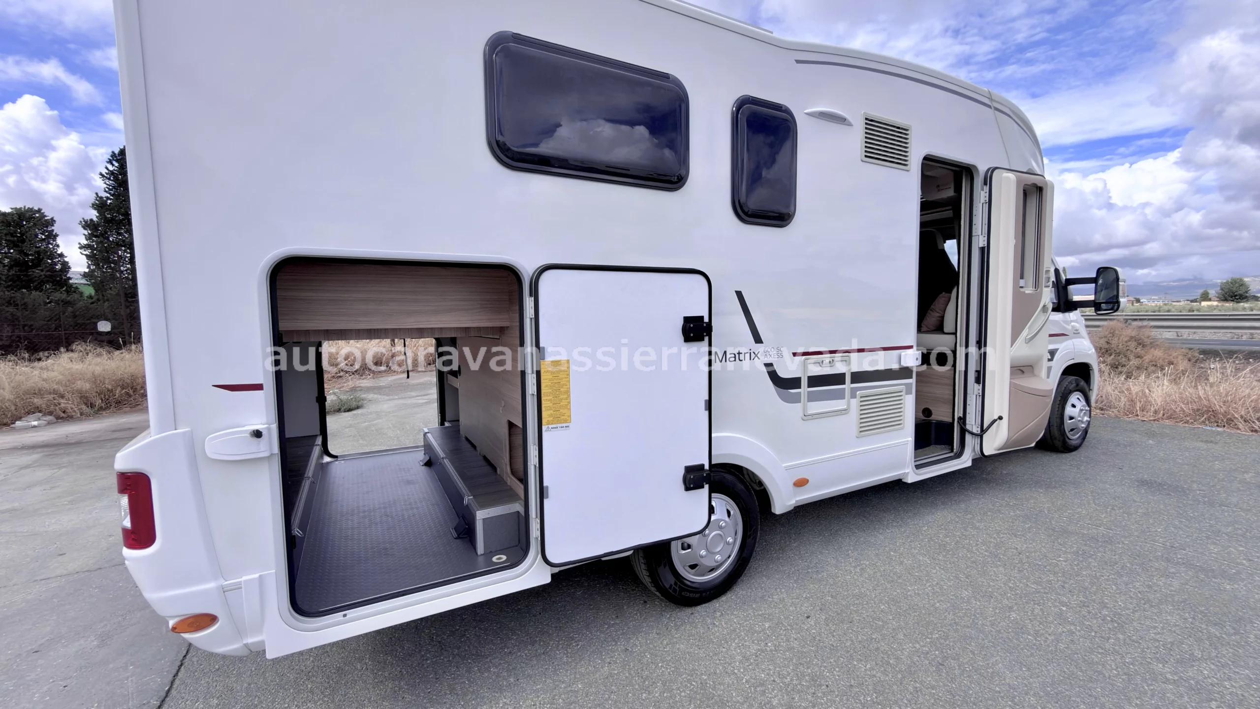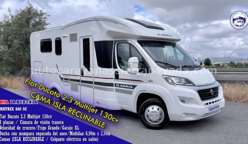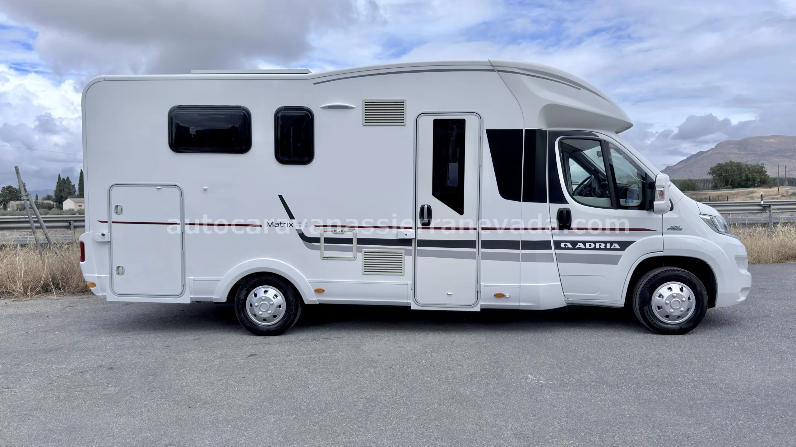 Autocaravana Perfilada ADRIA, modelo MATRIX 600 SC. Una marca Eslovena preparada para fríos extremos. Un vehículo muy aislado y de los más valorados por su estilo, rendimiento, comodidad, diseño y dureza en su construcción. Dispone de una claraboya panorámica en cabina muy amplia y una claraboya XXL en cocina por donde le entra mucha claridad dándole una sensación de amplitud y mucha ventilación Del año 2016, con tan solo 69.000km. Con un motor Fiat Ducato 2.3 Multijet 130cv y 6 velocidades un motor muy potente, fiable y de mantenimiento sencillo. Con Dispone de 4 plazas homologadas para viajar y dormir. *Cama Colgante eléctrica en Salón y CAMA Isla con cabecero reclinable y mucho hueco de almacenaje, uno de los modelos más selectos, ideal para parejas. La facilidad y comodidad a la hora de hacerla y levantarse de ella, hace que sea el modelo de cama más demandado por nuestros clientes. Una autocaravana muy amplia, perfecta para familias ideal para hacer viajes de larga estancia y vivir en ella, Medidas: (6,90m x 2,90m). Garaje con doble portón muy espacioso: (2,20m x 1,05m x 0,90m).