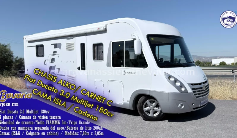 Autocaravana Integral de la marca, BAVARIA, modelo FJORD I781. Esta marca está situada en el mercado entre una de las mejores de Europa. Tiene una línea muy actual, ambiente acogedor, con unos acabados y muebles de alta calidad. Año 2014 y con 97.000km y toda su documentación que los certifican, muy cuidad, procedente de particular. Motor Fiat Ducato 3.0 MultiJet 180cv y 6velocidades, muy duro, potente, de fácil mantenimiento y con CADENA DE DISTRIBUCIÓN. Con Chasis ALKO y Suspensión con barras de torsión (mucho mejor que la suspensión de ballestas) y con gran espacio de almacenamiento en el doble suelo. La calefacción y el agua caliente funcionan mediante caldera ALDE, insonora y de radiadores como en casa, para calentar el habitáculo mucho más rápido. Con 4 plazas homologadas para viajar y dormir, gracias a su Cama colgante doble sobre cabina y CAMA ISLA este tipo de cama también le proporciona una gran comodidad en todos los aspectos, tanto al hacerla como acostarse por ambos lados e incluso no molestar al otro al levantarse, además de conseguir un diseño muy selecto y cotizado en su interior. Dispone de un maletero con doble portón muy espaciosa, sus medidas son: (2,25m x 1,00m x 0,95m). Esta increíble autocaravana mide:(7,80m x 3,05m) perfecta para hacer largos viajes o vivir en ella. ESTE VEHÍCULO SE CONDUCE CON EL CARNET C. M.M.A 4.250kg teniendo una gran cualidad que es la gran capacidad de carga.