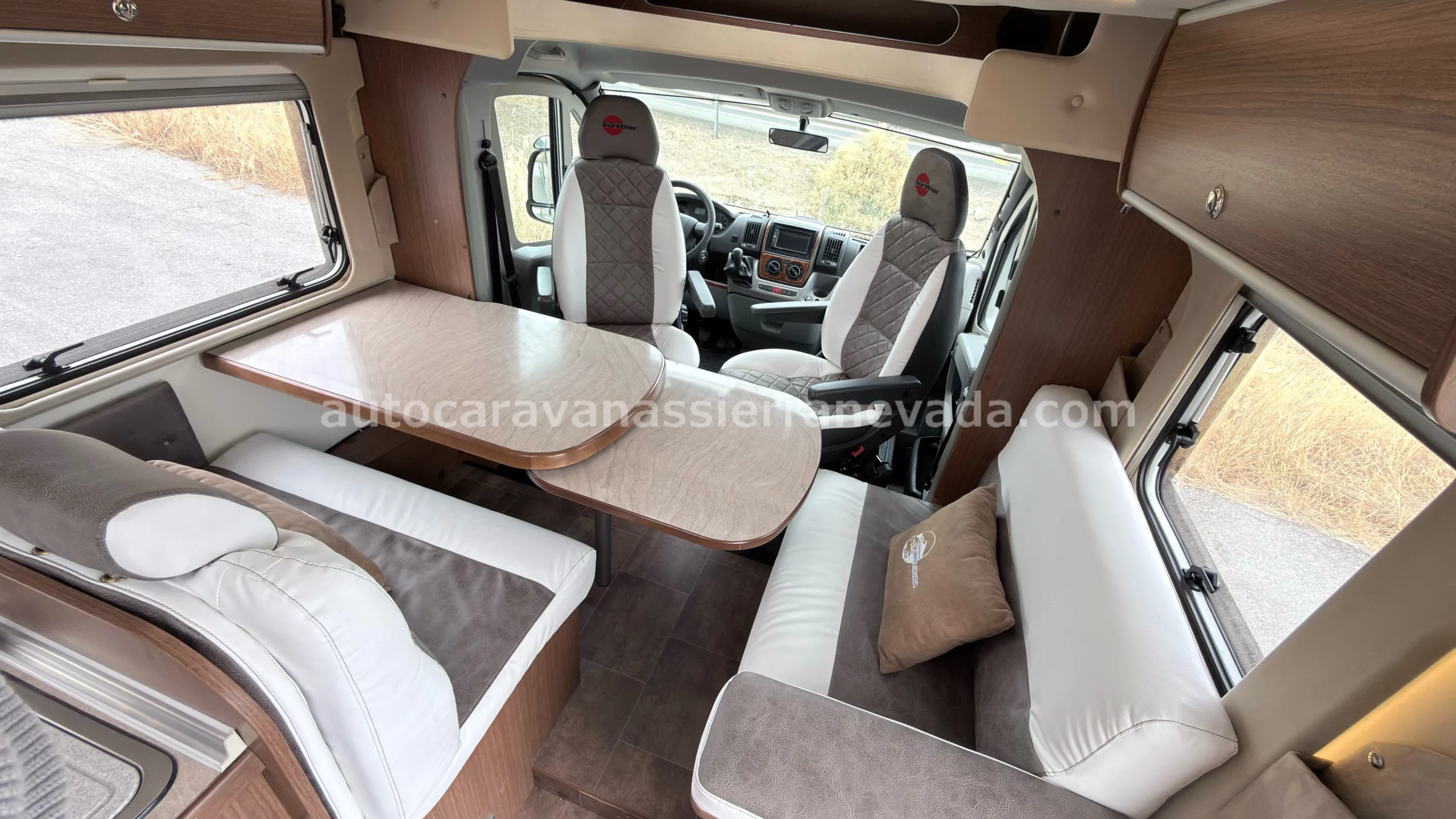 Aire acondicionado (de motor)  AirBag (conductor) Velocidad de Crucero Cierre centralizado (en cabina) Elevalunas eléctricos  Espejos eléctricos Radio (2DIN-CD- USB-BT) Cámara de visión trasera Asientos giratoriosOscurecedores REMIS en cabina Mosquiteras en ventanas ,claraboyas y puerta principal Claraboyas transparentes y Claraboya panorámica XXL en cabina Frigo DOMETIC  (220v, Gas, 12v) 160L capacidad Ducha con mampara separada de aseo Batería de 100ah. Placa solar de 100w. Calefacción Truma Combi TV.12v(TDT-HDMI-USB-DVD)Escalón eléctrico de aluminio  Toldo FIAMMA de 4m. Baca de aluminio Patas estabilizadoras Neumáticos reforzados marca MICHELIN especial camper