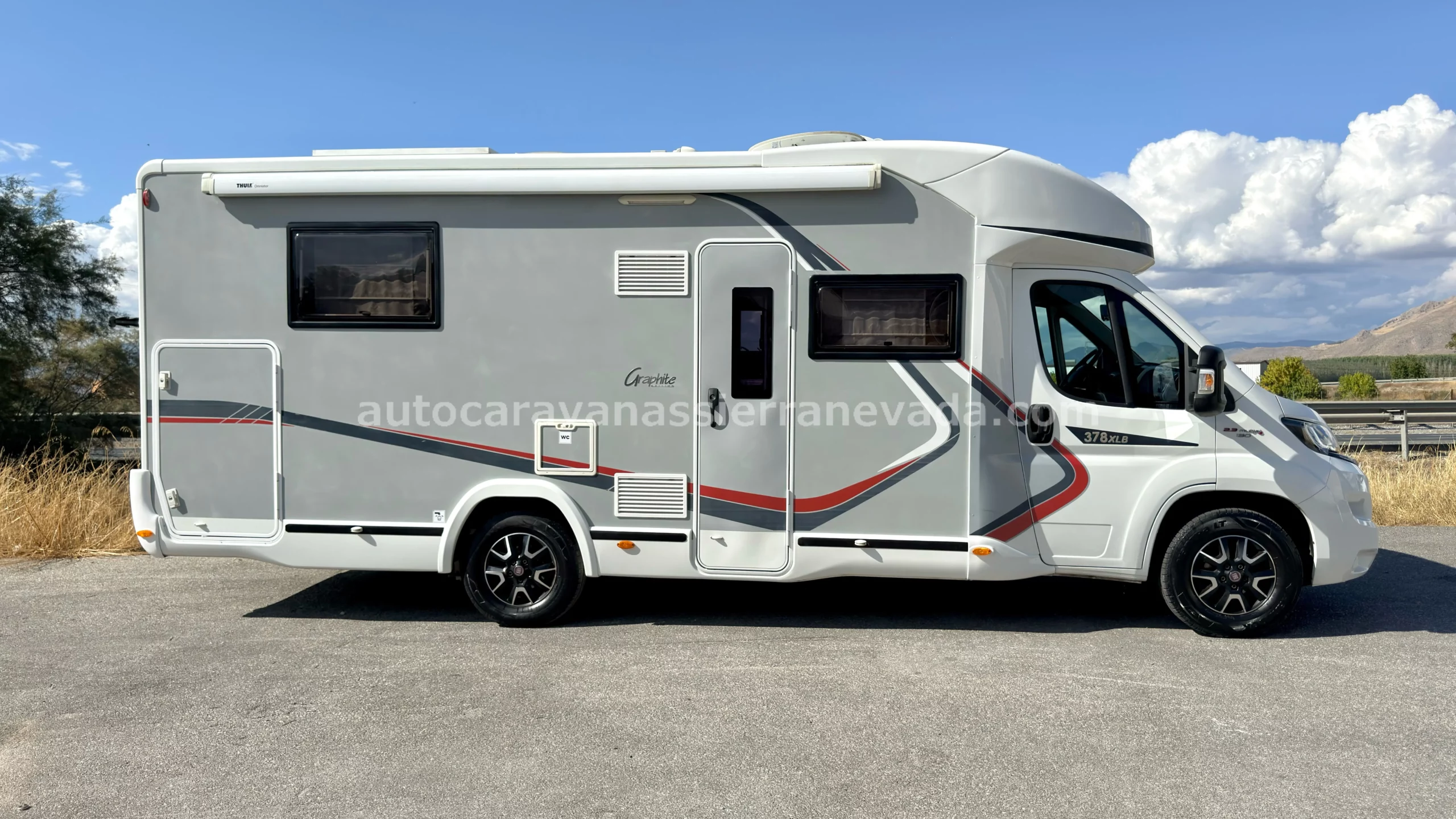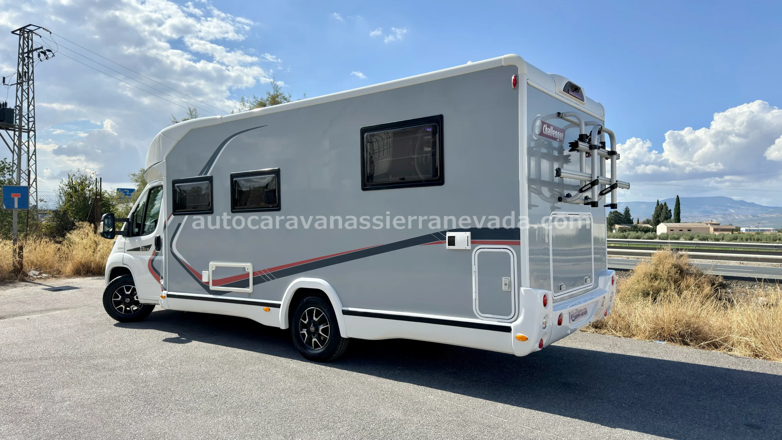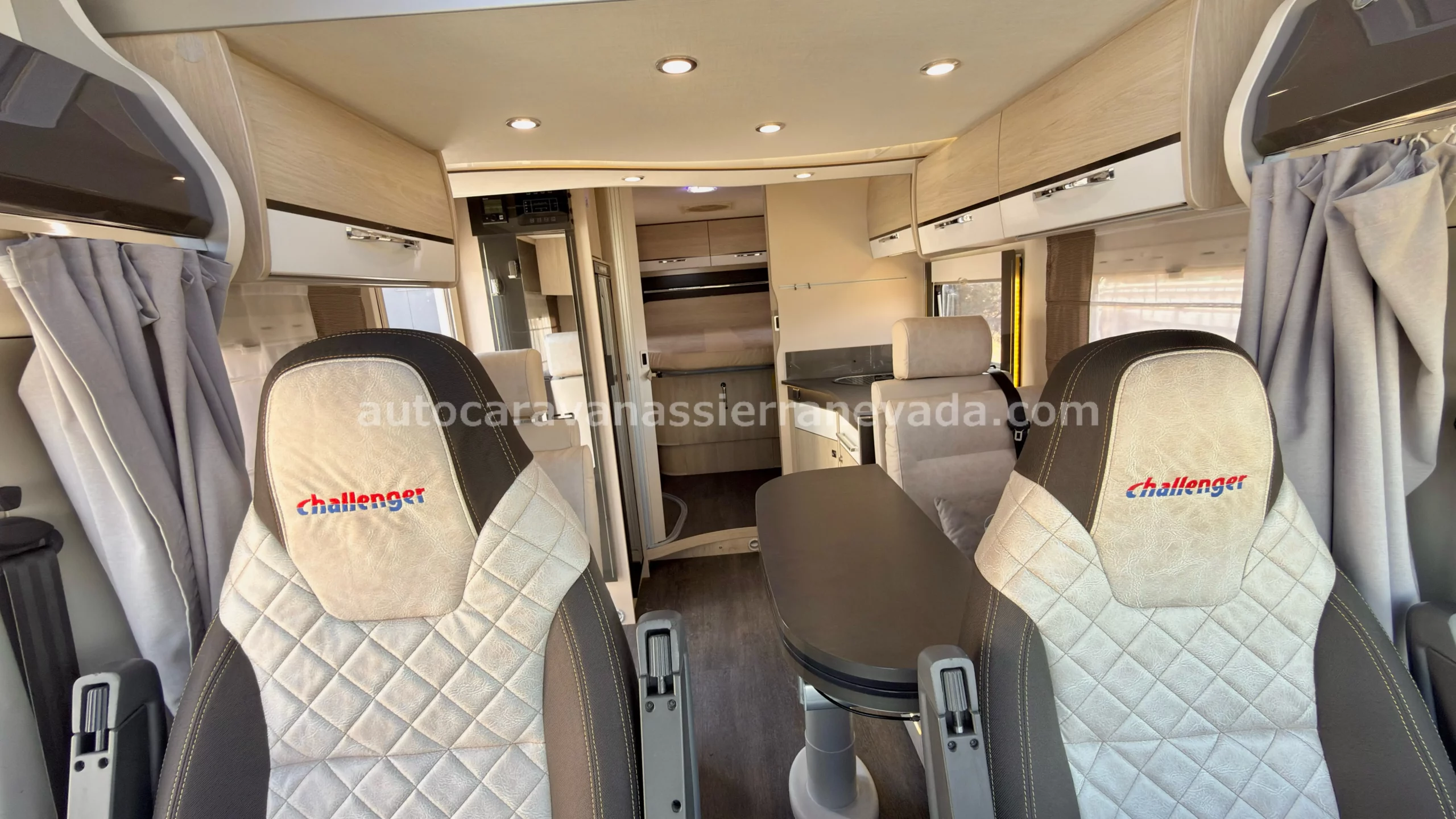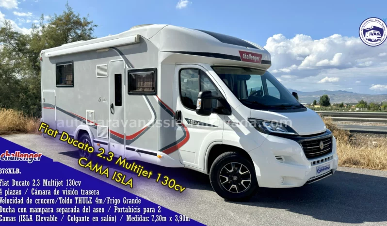 Autocaravana Perfilada, CHALLENGER, modelo 378XLB. Una marca muy apreciada en el mercado por su calidad, estética y diseño. Generosa autocaravana que nos ofrece una amplitud en su interior enorme, con equipamiento muy completo y lujoso, además consta de una claraboya panorámica xxl que le dará mucha luz. Del año 2017 y con tan solo 72.000km.Con un motor Fiat Ducato 2.3 Multijet 130cv. de 6 velocidades, motor muy duro y fiable, de muy bajo consumo. Plazas Homologadas para viajar 4 personas. Con 2 camas para dormir: (Colgante eléctrica en salón y Cama Isla elevable manual, este tipo de cama también le proporciona una gran comodidad en todos los aspectos, tanto al hacerla como acostarse por ambos lados e incluso no molestar al otro al levantarse, además de conseguir un diseño muy selecto y cotizado en su interior, gracias a este tipo de cama dispondrá de un garaje XXL  con doble acceso con unas medidas: (2,15m x 0,90m x 1,10m)dónde podrá llevar bicicletas y con unas medidas no excesivamente grandes, Muy bien distribuida y espaciosa en su interior, perfecta para largos viajes, con unas medidas exteriores (7,30m X 2,90m). Este vehículo disponé de calefacción truma inet radady.
