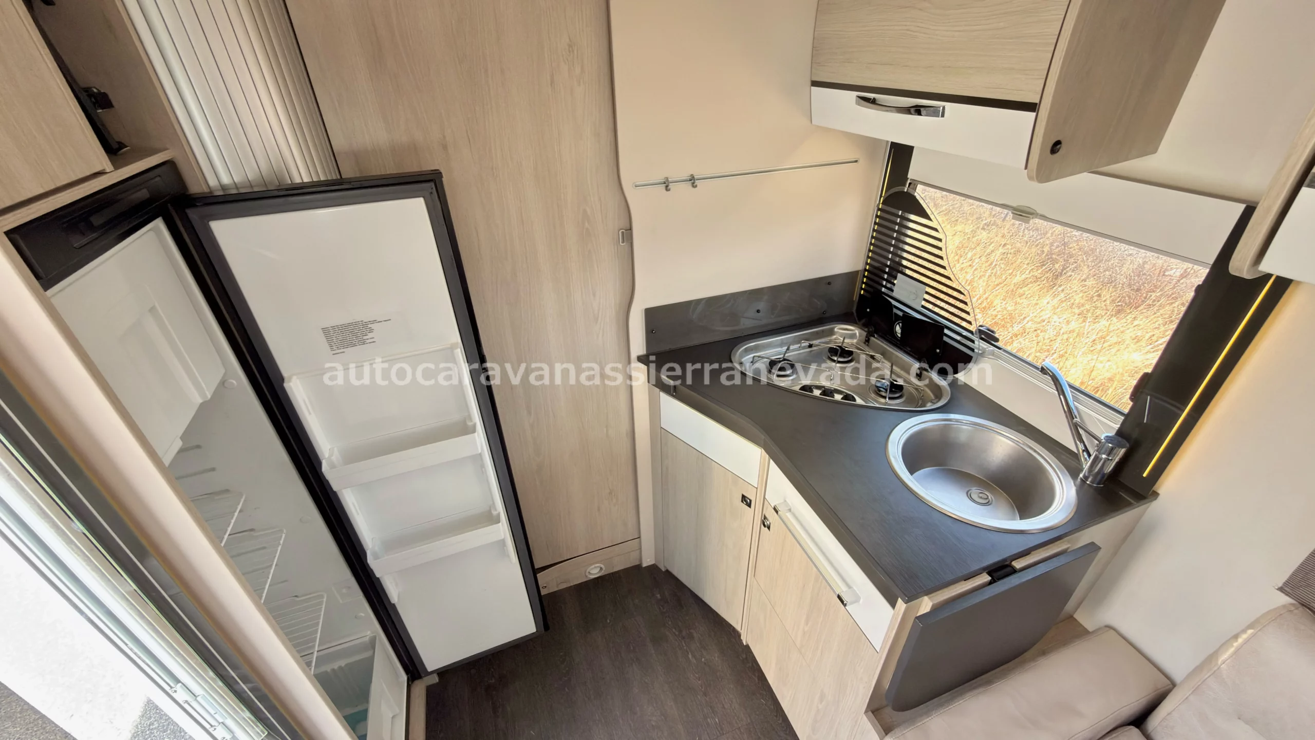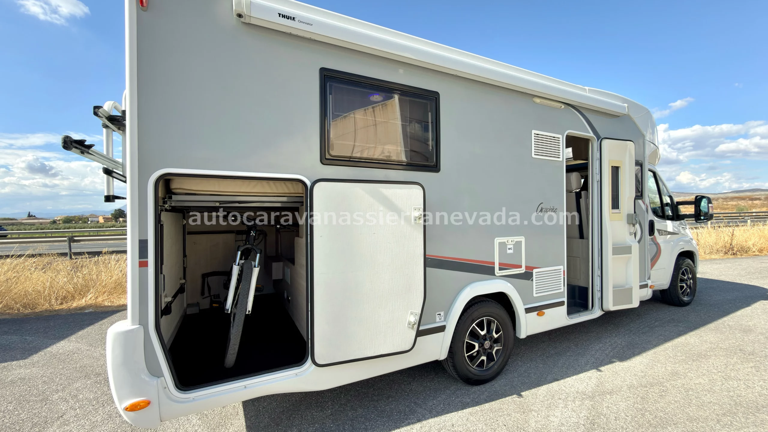 Aire acondicionado( de motor)  AirBag ( conductor y copliloto) Velocidad de Crucero Cierre centralizado(en cabina) Espejos eléctricos Elevalunas eléctricos  Radio (CD-2DIN-AUX-USB-SD-BT) Cámara de visión trasera Asientos giratorios Mosquiteras en ventanas, claraboyas y puerta principal Claraboyas transparentes y Claraboya panorámica xxl en cabina  TurboVent Frigo THETFORD  (220v, Gas, 12v, Auto) 142L capacidad Ducha con mampara separada de aseo Batería de 95ah. Placa solar de 100w. Calefacción truma inet radady. Tv 12v. (TDT-HDMI-USB)  Escalón de doble peldaño integrado  Toldo THULE de 4m. Portabicis para 2 Neumáticos reforzados especial camper