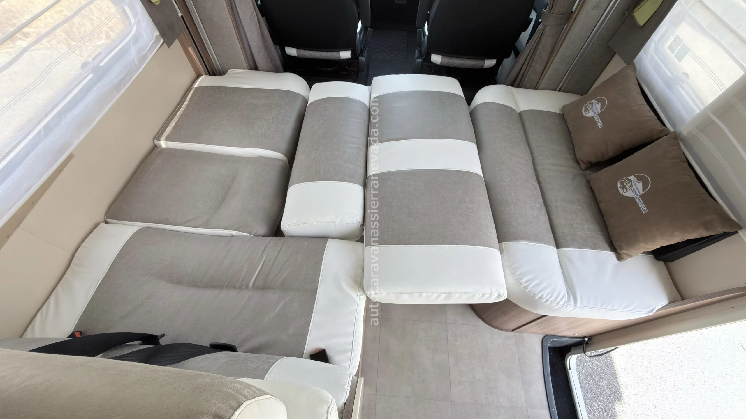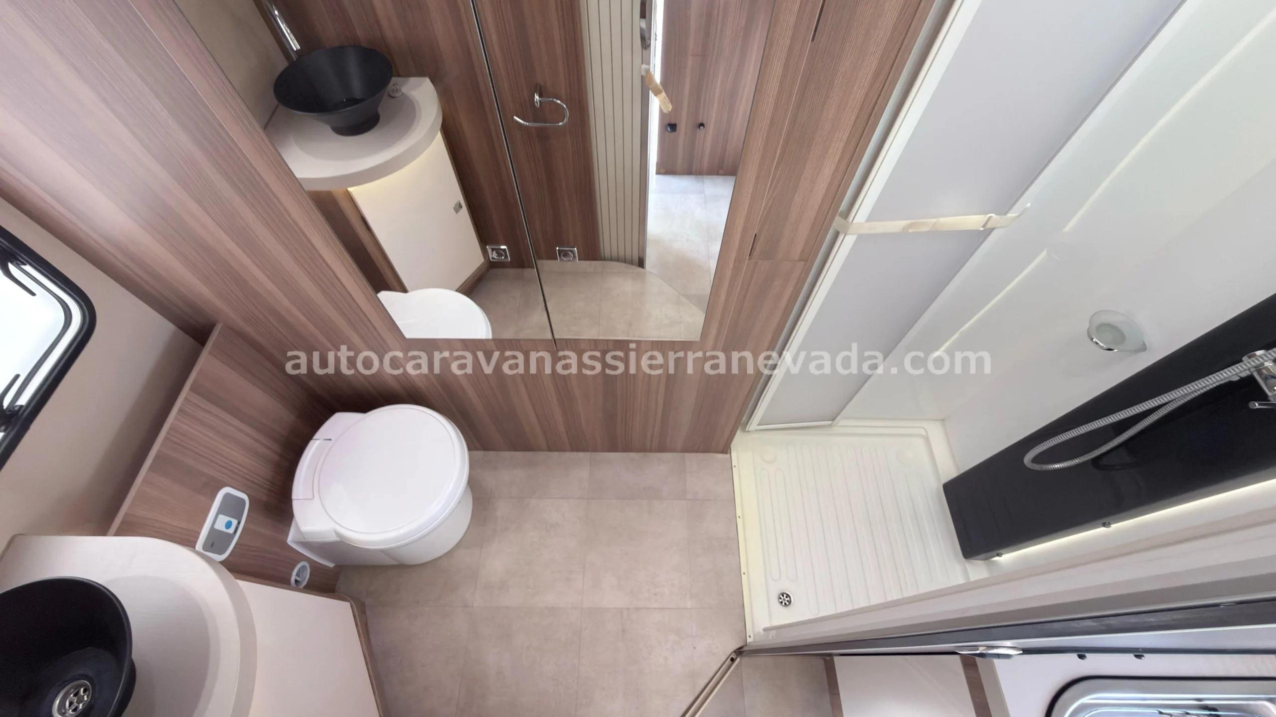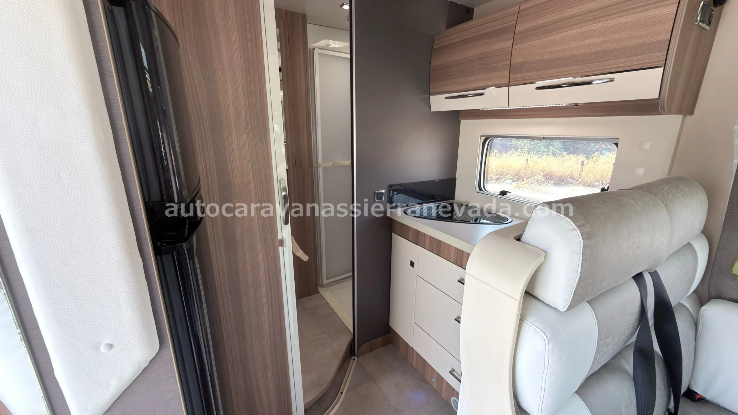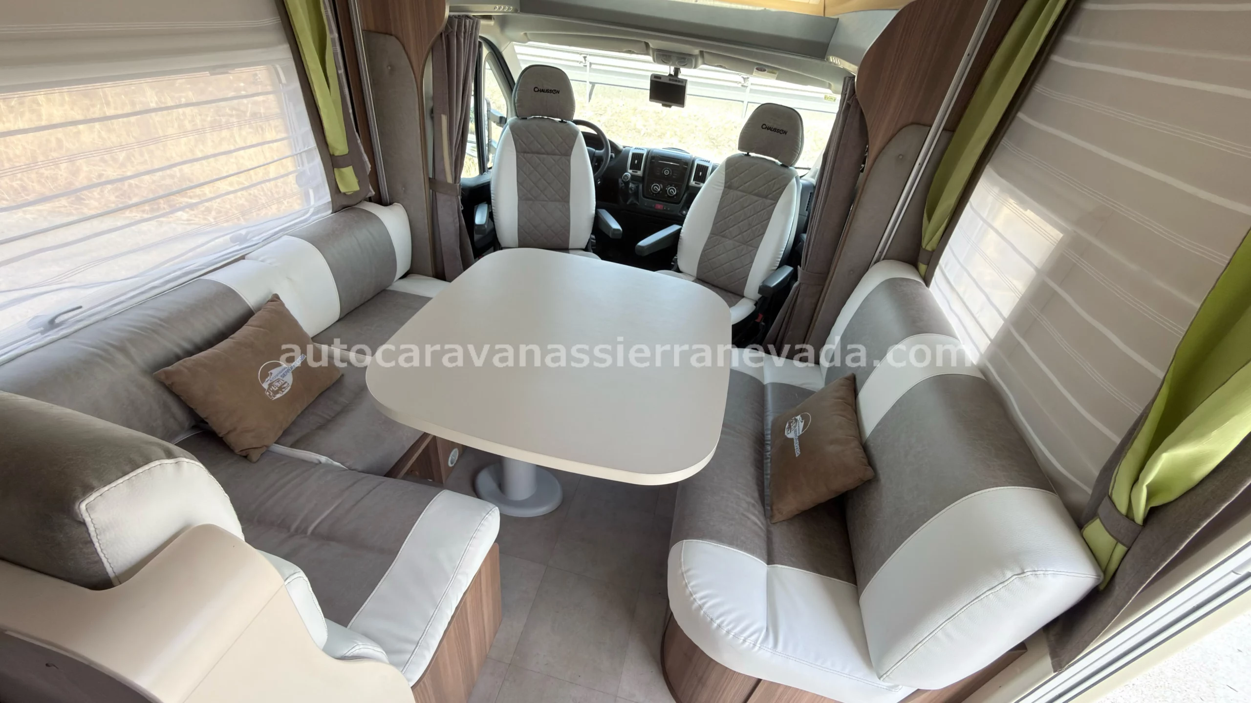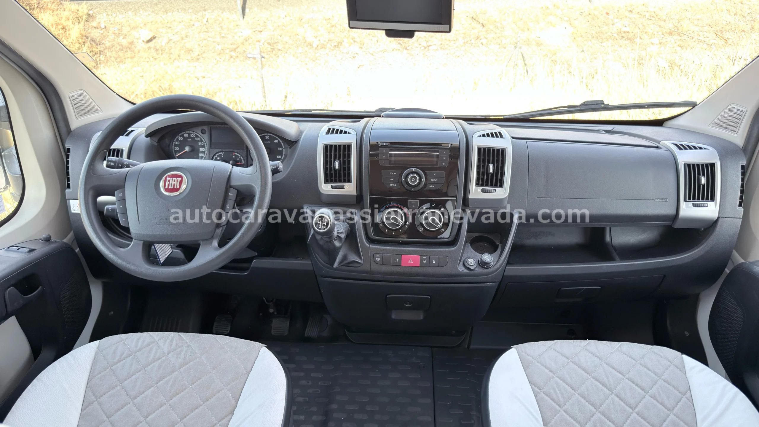 Autocaravana Perfilada de la marca Chausson, modelo TITANIUM TI610. Una de las marcas más valoradas por su dureza en su construcción, durabilidad, comodidad y seguridad. Con un diseño moderno y elegante. Dispone de una claraboya panorámica en cabina muy amplia, por donde le entra mucha claridad dándole una sensación de amplitud y mucha ventilación. Con un comedor FACE TO FACE espacioso y acogedor. Del año 2014 con tan solo 63.000km. Con motor, Fiat Ducato 2.3 Multijet 130cv y seis velocidades, muy duro, potente y de fácil mantenimiento. La autocaravana, al ser de tamaño reducido y ligera, mantiene muy bien una velocidad constante de 140km/h, incluso subiendo puertos de montaña a 100km/h sin cambiar de marcha y haciendo un bajo consumo gracias a su perfil aerodinámico. Consta de un boiler TRUMA para agua caliente + Calefacción de gasoil WEBASTO. Con 4 plazas homologadas en documentación para viajar y dormir gracias a sus siguientes camas: Colgante eléctrica en salón + Salón convertible muy amplia y cómoda de hacer gracias a su mesa eléctrica. Dispone de un garaje con doble portón de unas medidas: (2,20 largo x 0,70 ancho x 1,25 alto). Ideal para gente que quiere una autocaravana muy cómoda de llevar y entrar en aparcamientos reducidos, se conduce igual que un turismo, Medidas: (6,70m x 2,90m). Consta de un baño trasero muy amplio, con un grandísimo vestidor encima de la bodega que ocupa el ancho del vehículo.