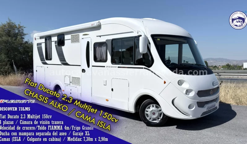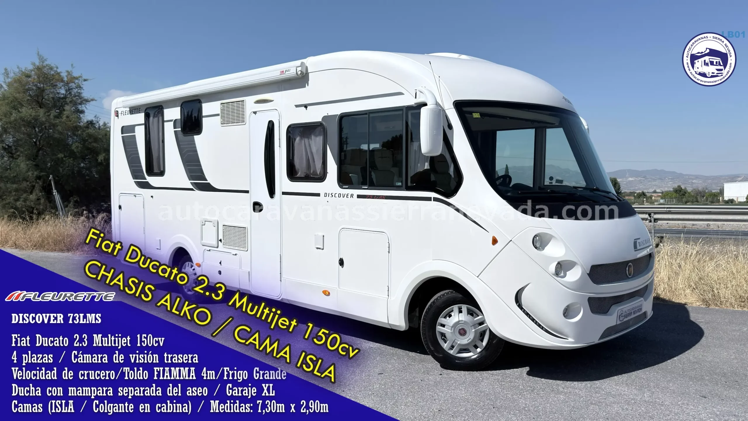 Autocaravana integral FLEURETTE, modelo DISCOVER 73LMS. Fleurette es la marca francesa de autocaravanas de alta gama por excelencia, destaca por su elegancia, robustez y calidad de acabado. Con motor Fiat Ducato 2.3 Multijet 150cv. Del año 2014 y con 126.000km procedente de particular. Dispone de Chasis ALKO y suspensión con barras de torsión (mejor que la suspensión de ballestas) y con gran espacio de almacenamiento en el doble suelo. Con 4 plazas homologadas para viajar y dormir gracias a sus siguientes camas; Cama Isla con grandes huecos de almacenaje, este tipo de cama también le proporciona una gran comodidad en todos los aspectos, tanto al hacerla como acostarse por ambos lados e incluso no molestar al otro al levantarse, además de conseguir un diseño muy selecto y cotizado en su interior y Cama doble colgante sobre la cabina. Fleurette le invita a un ambiente interior acogedor, combinando encanto, elegancia y refinamiento a la francesa. Una gran autocaravana muy amplia, para hacer grandes viajes o incluso vivir en ella gracias a sus medidas: (7,30m x 2,90m). Dispone de una Gran bodega con doble puerta:(2,20m x 1,10m x 0,90m).Se conduce con carnet B el normal.