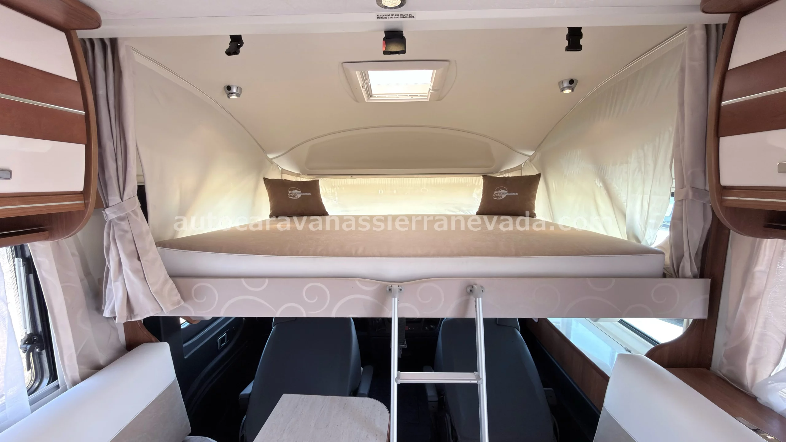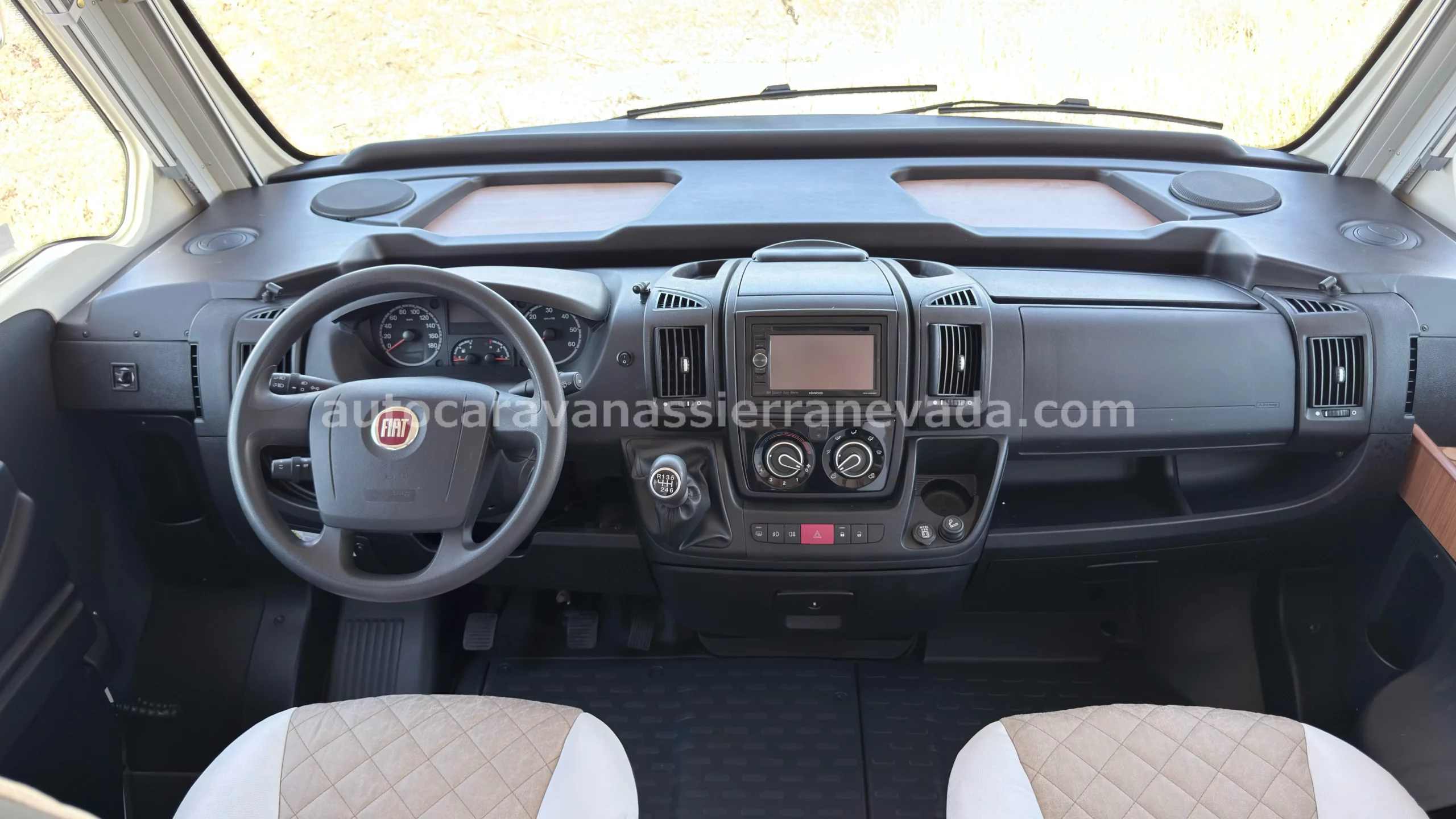 Aire acondicionado(de motor)  AirBag (conductor y copiloto) Velocidad de Crucero Cierre centralizado Espejos eléctricos Elevalunas eléctricos (sólo conductor) Radio (2DIN-CD-USB-BT) Cámara de visión trasera(en radio) Asientos giratorios Oscurecedores REMIS en cabina completa Mosquiteras en ventanas, claraboyas y puerta principal Ventana PRACTICABLE con mosquitera en puerta principal Claraboyas transparentes y Claraboya xxl en salón  Frigo DOMETIC (220v, Gas, 12v, Auto) 160L capacidad Horno Extractor de humos Ducha con mampara separada de aseo Batería de 100ah. Placa solar de 100w. Calefacción Truma Combi Tv 12v. (LCD-HDMI-USB-DVD)  Escalón de doble peldaño integrado  Toldo FIAMMA de 4m. Escalera trasera para subir a techo Baca de aluminioNeumáticos reforzados marca CONTINENTAL especial camper