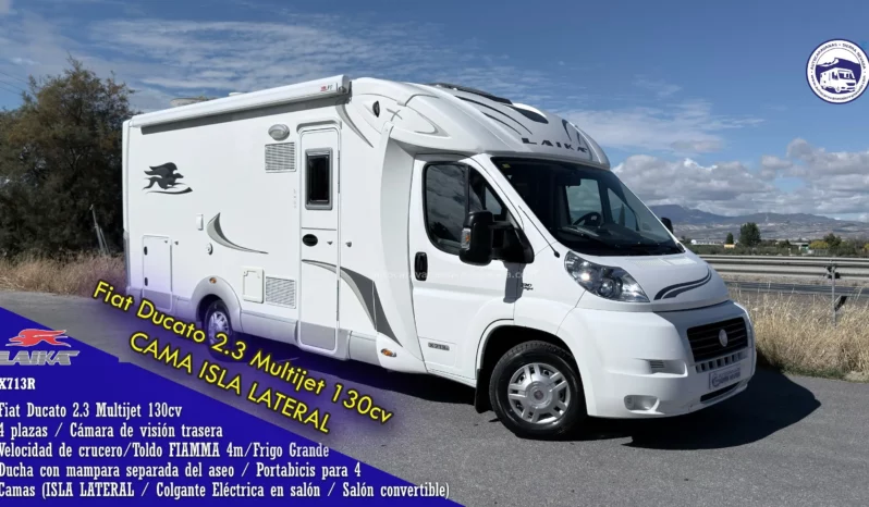 Autocaravana Perfilada LAIKA gran marca de prestigio con un diseño Italiano, modelo X713R, perteneciendo al grupo HYMER una de las mejores marcas del mercado con grandes acabados, gran calidad, estética y de construcción Alemana. De las mejores marcas en Europa. Con un motor muy actual, Fiat Ducato 2.3 MultiJet con 130cv y 6 Velocidades. Un motor potente, muy fiable y de mantenimiento sencillo. Con 108.000km, procedente de particular. Del año 2011 y con 4 plazas homologadas para viajar y dormir, gracias a sus camas: Colgante eléctrica en salón para 1, Salón Convertible para 1 y Isla lateral. Dispone de un amplio garaje, sus medidas; (0,70m x 1,10m x 0,95m). Esta increíble autocaravana mide: (7,20m x 2,90m), muy bien distribuida y perfecta para hacer largo viajes o vivir en ella.