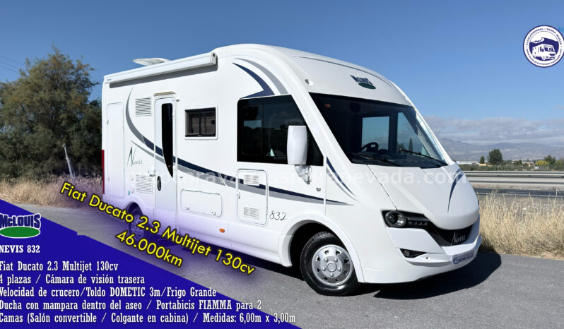 Autocaravana Integral de la marca McLouis, modelo NEVIS 832. Una de las marcas más valoradas por su dureza en su construcción, durabilidad, comodidad y seguridad. Del año 2016 con tan solo 43.000km, , procedente de partícula, no proviene de alquiler, mucho mejor que comprarla nueva ya que el impuesto de matriculación (muy elevado) y el IVA está incluido en este precio. Con motor Fiat Ducato 2.3 MultiJet 130cv 6 velocidades. Un motor moderno, muy fiable y de mantenimiento sencillo. La autocaravana, al ser de tamaño reducido y ligera, mantiene muy bien una velocidad constante de 140km/h, incluso subiendo puertos de montaña a 100km/h sin cambiar de marcha y haciendo un bajo consumo gracias a su perfil aerodinámico. Con 4 plazas homologadas en documentación para viajar y dormir gracias a sus siguientes camas: Colgante en cabina y Salón convertible muy amplia y cómoda. Dispone de un maletero espacioso con unas medidas: (0,40 largo x 1,00 ancho x 0,70 alto). Ideal para gente que quiere una autocaravana muy cómoda de llevar y entrar en aparcamientos reducidos, se conduce igual que un turismo, con unas Medidas: (6,00m x 3,00m).