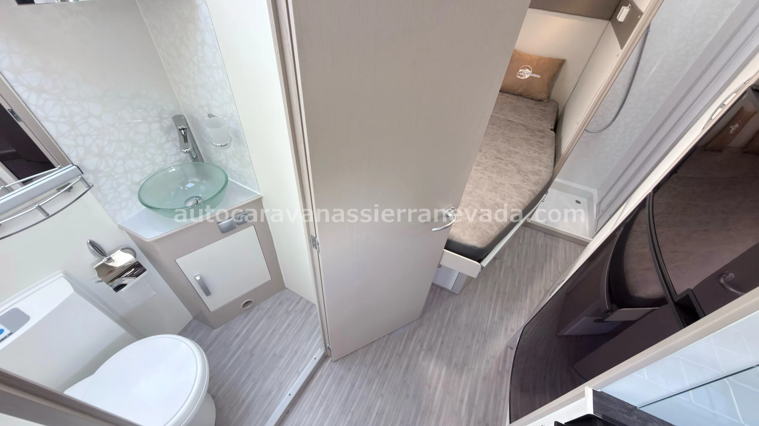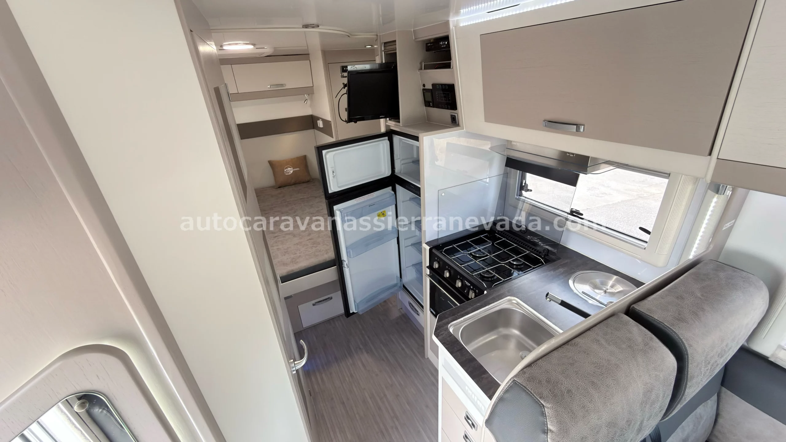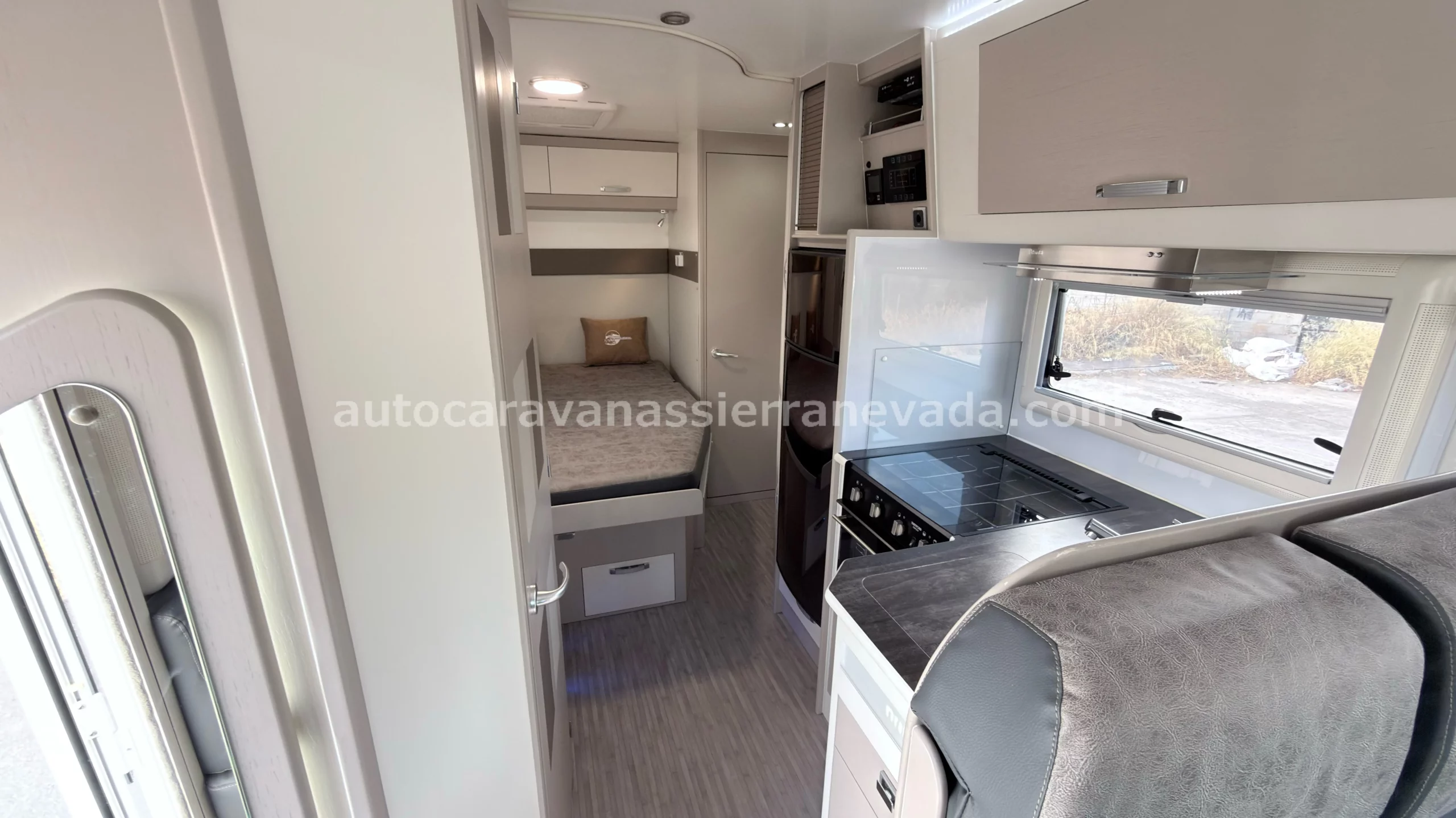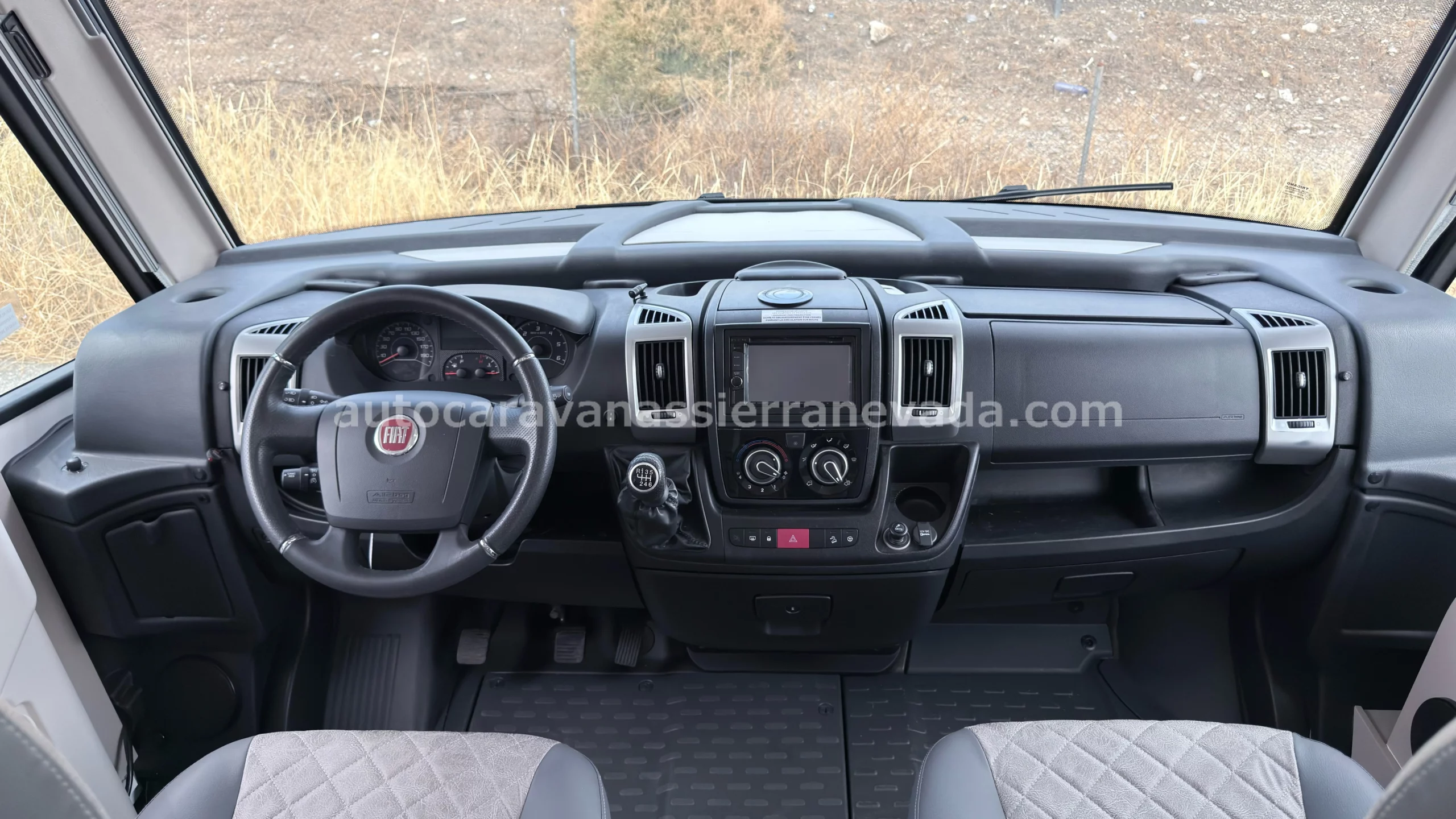 Aire acondicionado(de motor)  AirBag (conductor y copiloto) Velocidad de Crucero Cierre centralizado Espejos eléctricos Elevalunas eléctricos (sólo conductor) Radio (2DIN-CD-USB-BT) Cámara de visión trasera(en radio) Asientos giratorios Oscurecedores REMIS en cabina y Persiana eléctrica en luna Mosquiteras en ventanas, claraboyas y puerta principal Claraboyas transparentes y Claraboya xxl en salón  Frigo DOMETIC (220v, Gas, 12v, Auto) 160L capacidad Horno Extractor de humos Ducha con mampara separada de aseo Batería de 100ah. Placa solar de 100w. Calefacción Truma  inet  ready Tv 12v. (HDMI-USB)  Escalón de doble peldaño integrado  Toldo THULE de 4,5m. Portabicis para 3 Ducha exterior Neumáticos reforzados marca CONTINENTAL especial camper