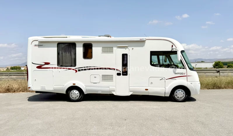 Autocaravana integral RAPIDO, modelo 9090DF, una de las marcas más valoradas del mercado por su gran calidad. Con un diseño muy selecto y cotizado en su interior gracias a su Cama isla. Esta proporciona una gran comodidad en todos los aspectos, tanto al hacerla, como acostarse por ambos lados e incluso no molestar al otro al levantarse. Con un gran motor, Fiat Ducato 2.3MultiJet 130cv y 6 velocidades, muy potente, de fácil mantenimiento. Dispone de Chasis ALKO y Suspensión con barras de torsión (proporcionando más estabilidad en carretera). Año 2010, con 89.000 kilómetros. Con 4 plazas homologadas para viajar y dormir, gracia a sus camas; isla ya mencionada y Colgante en cabina. Esta increíble autocaravana mide: (7,20m x 3,00m), muy bien distribuida y perfecta para hacer largo viajes o vivir en ella. Dispone de un gran garaje con doble portón, con unas medidas (2,20 largo x 1,20 ancho x 1,00 alto).